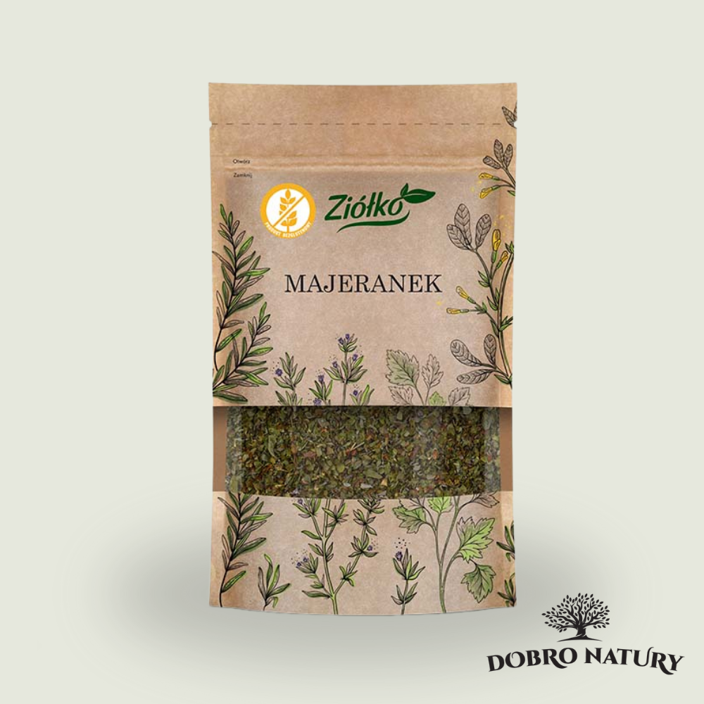 Majeranek (Origanum majorana) to zioło pochodzące z regionu śródziemnomorskiego, które od wieków jest podstawą kuchni polskiej. Ma delikatny, ziołowy aromat i lekko słodkawy smak, dzięki czemu doskonale podkreśla charakter tradycyjnych potraw.