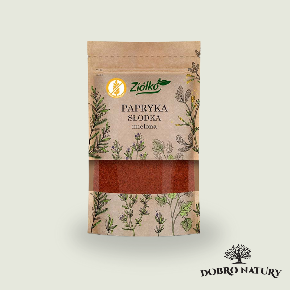 Papryka słodka mielona Ziółko – aromatyczna przyprawa bezglutenowa o intensywnym smaku i pięknej barwie. Idealna do mięs, sosów, gulaszy i kuchni świata.