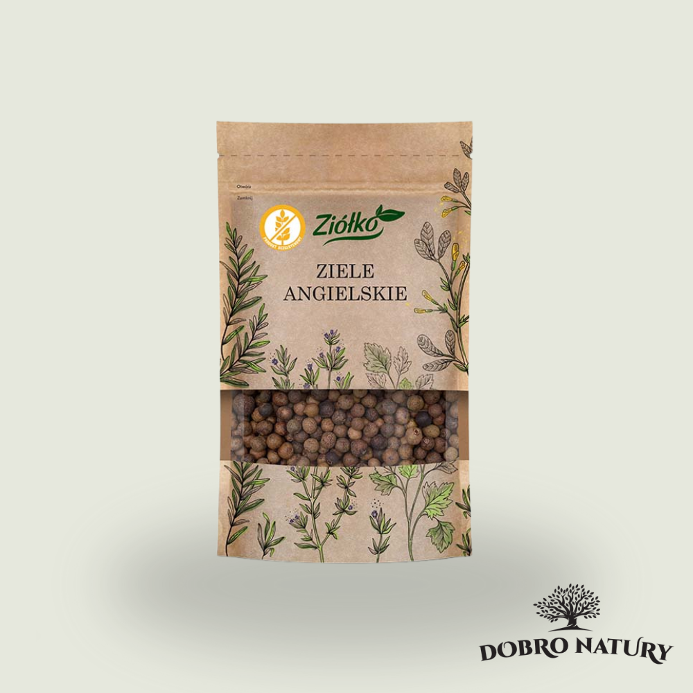 Ziele angielskie Ziółko 50 g – aromatyczna przyprawa bezglutenowa, niezastąpiona w marynatach, zupach, sosach i przetworach.